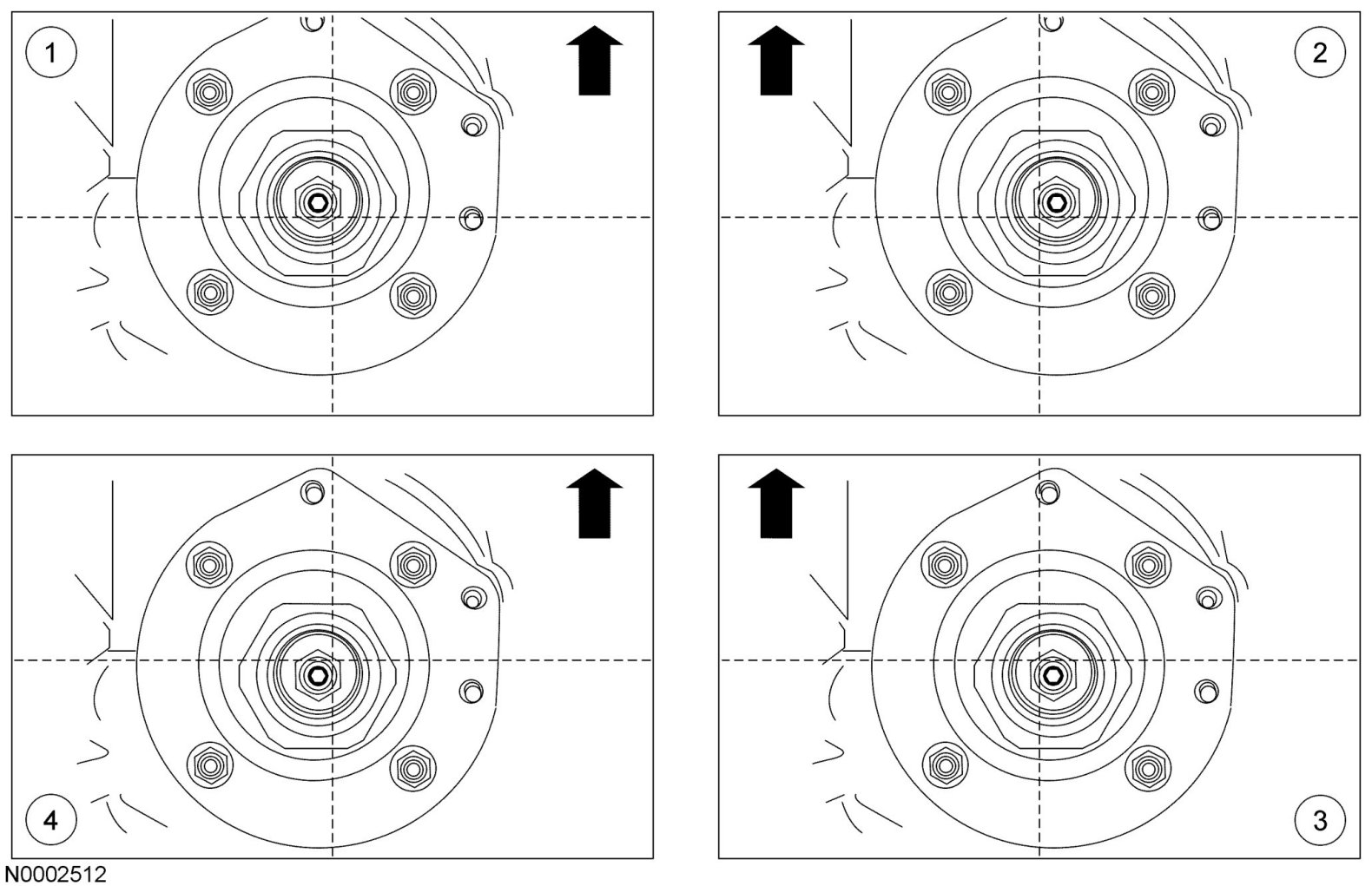 NOTE:Notice the position of the strut rod in each position.