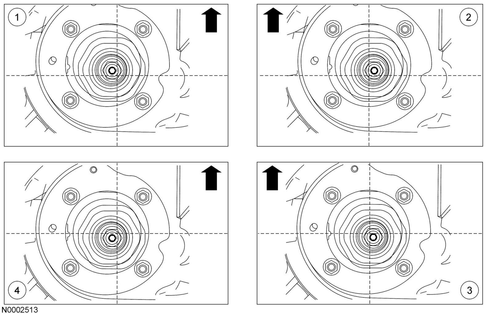 2. Remove the 4 front strut upper mounting bracket nuts.