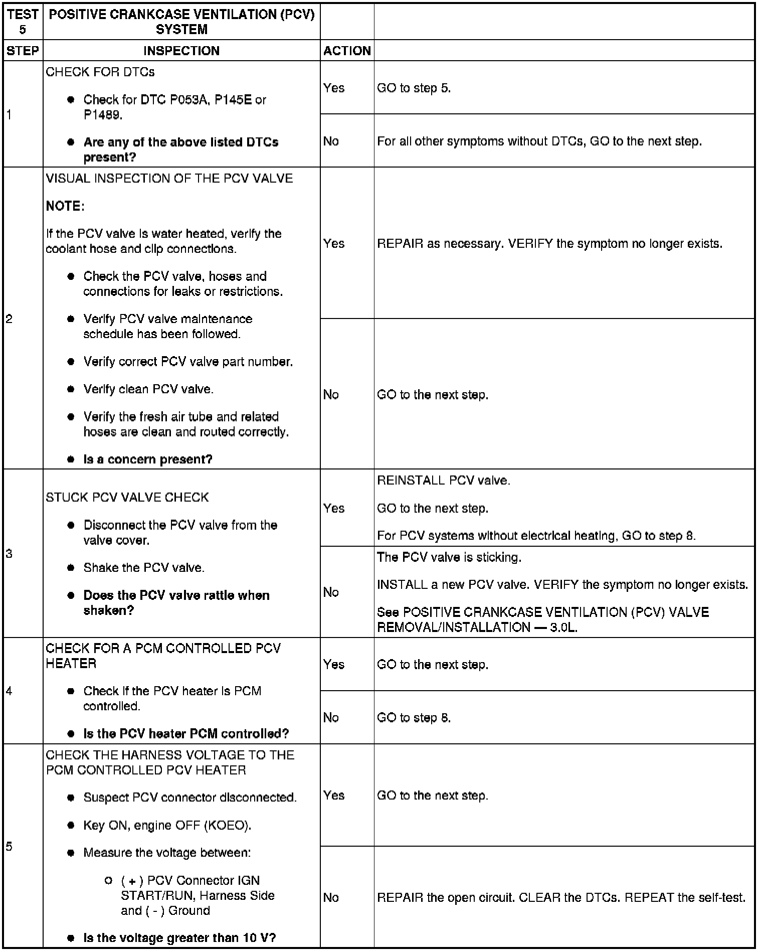 TEST 5: POSITIVE CRANKCASE VENTILATION (PCV) SYSTEM
