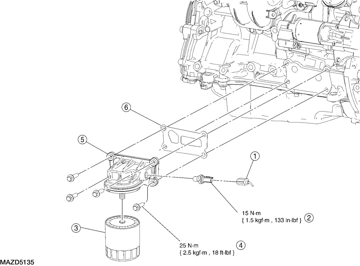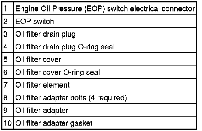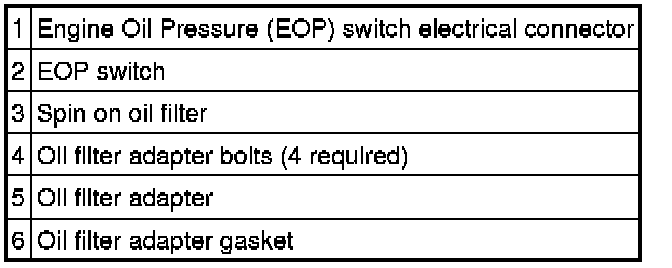 Oil Filter Adapter, Oil Filter Element and Engine Oil Pressure (EOP) Switch