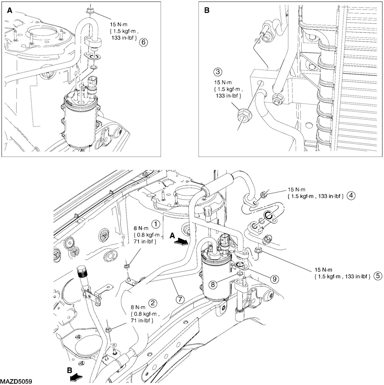 - To install, tighten to 8 Nm {0.8 kgf-m, 71 in-lbf}.