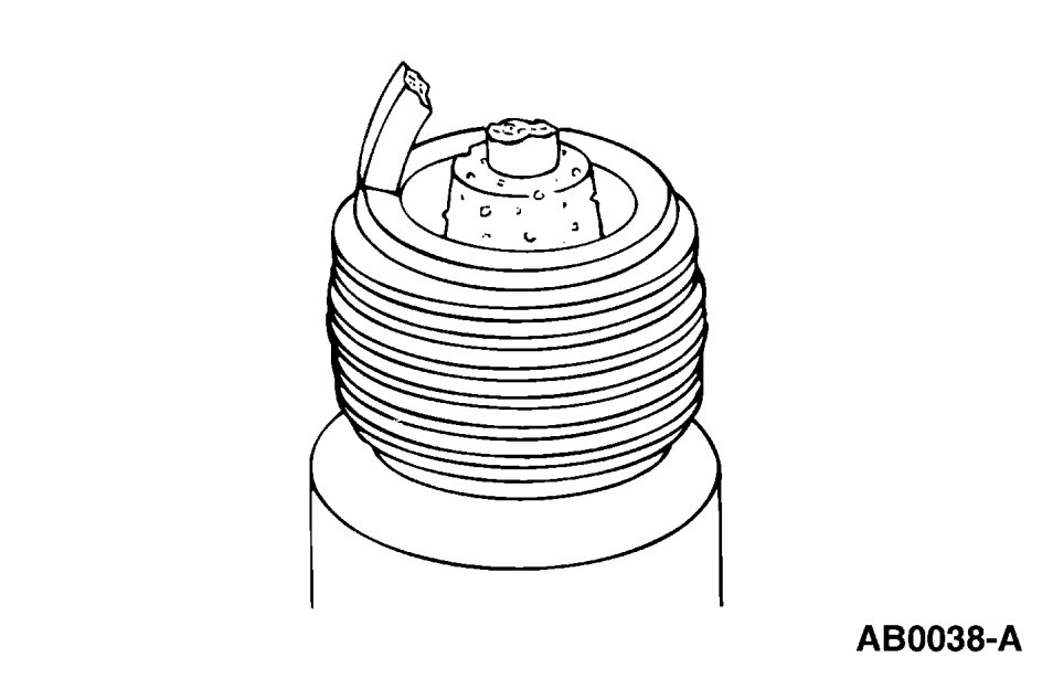 5. Inspect for pre-ignition, identified by melted electrodes and a possibly damaged insulator. Metallic deposits on the insulator indicate engine damage. This may be caused by incorrect ignition timing, wrong type of fuel or the unauthorized installation of a heli-coil insert in place of the spark plug threads.
