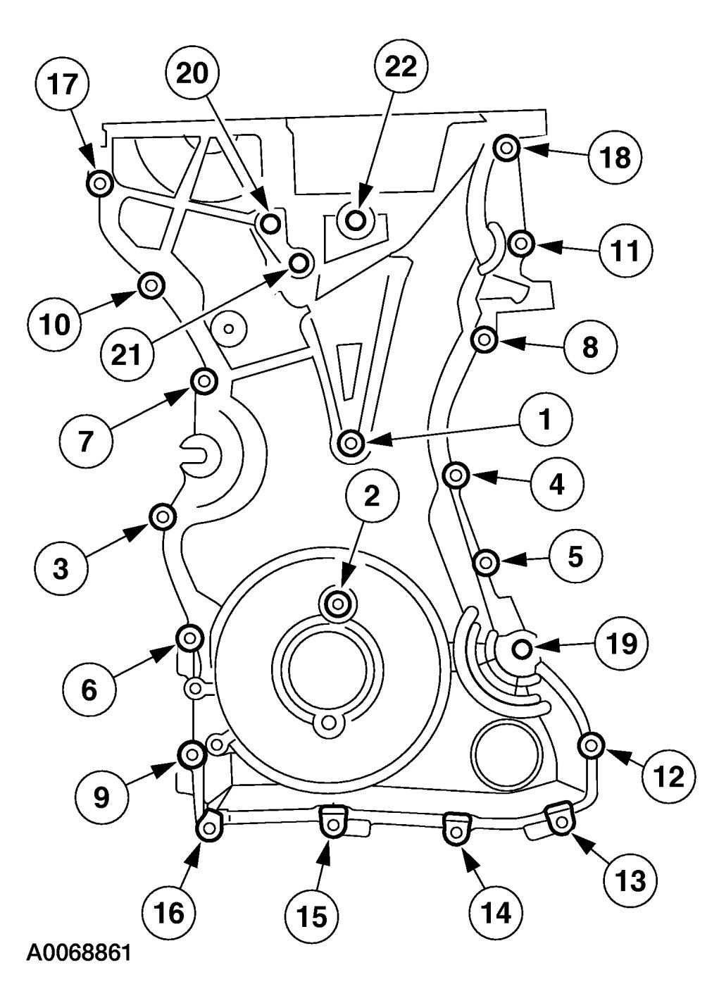 Install the engine front cover. Tighten the bolts in the sequence shown, to the following specifications: