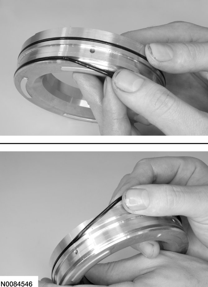 12. Install 2 new seals on the O/D (4, 5, 6) clutch piston and lubricate the seals with petroleum jelly.