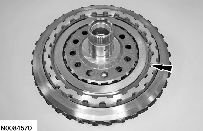 b. Lift the direct (3, 5, R) clutch so that the snap ring is in the groove of the pressure plate.