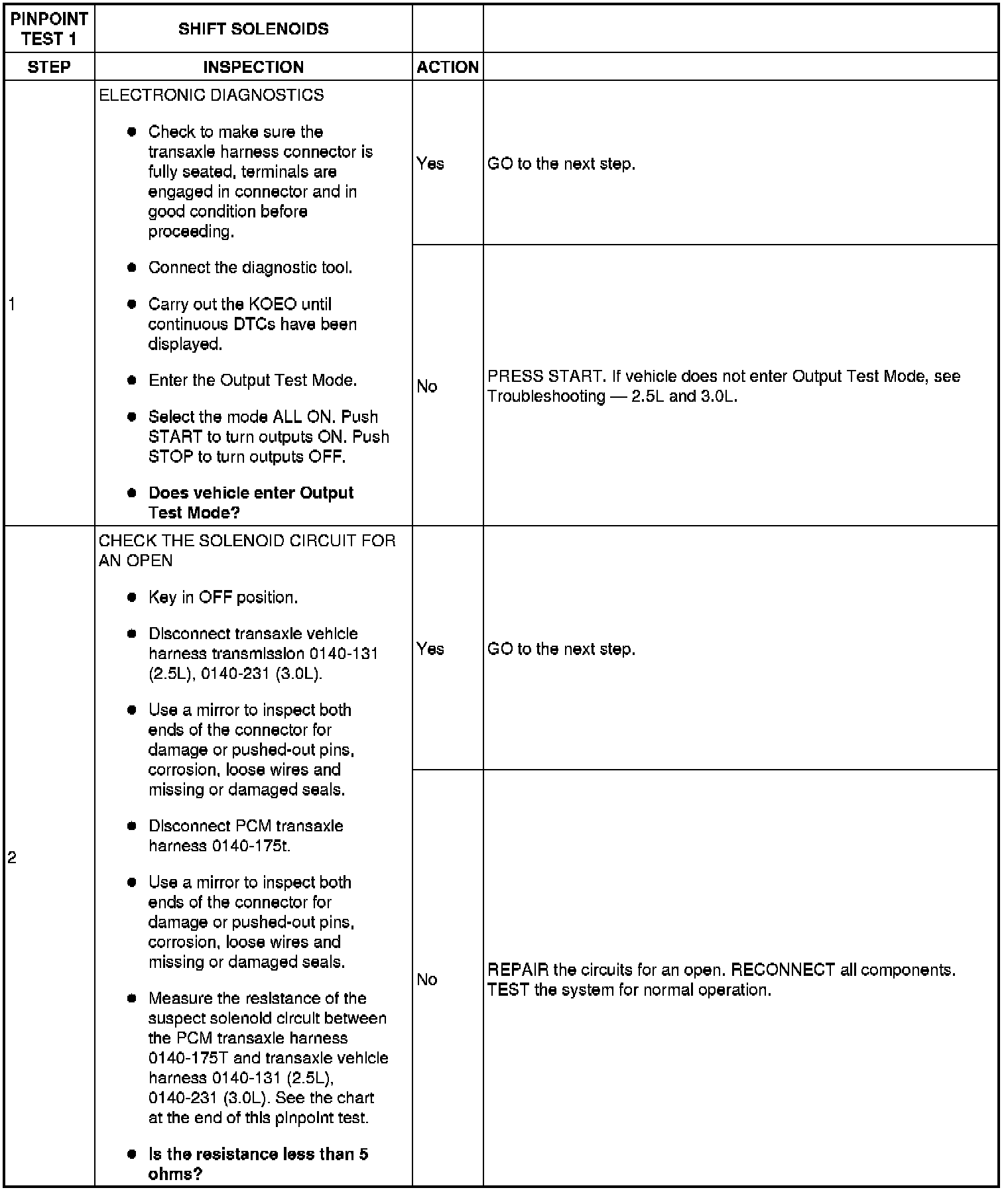 PINPOINT TEST 1: TRANSAXLE CONTROL SOLENOIDS
