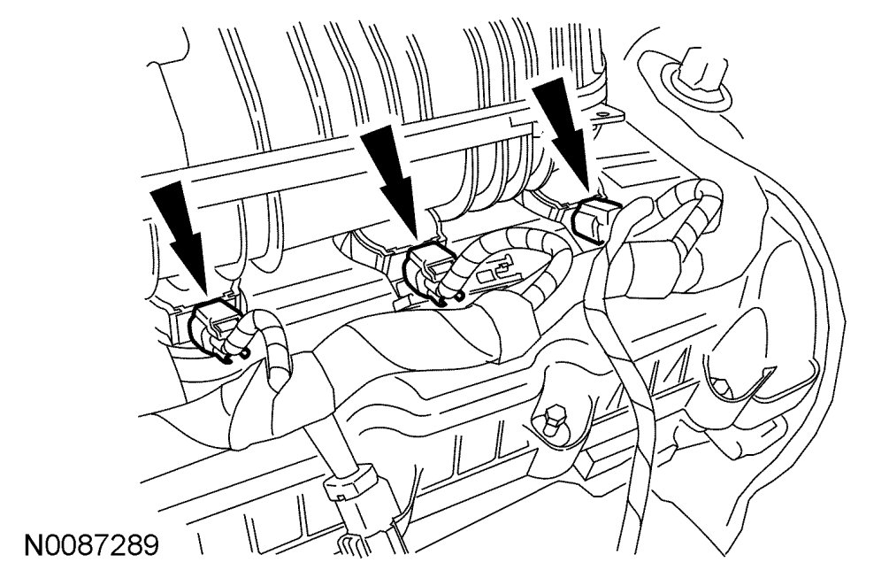 8. Disconnect the 3 LH coil-on-plug electrical connectors.