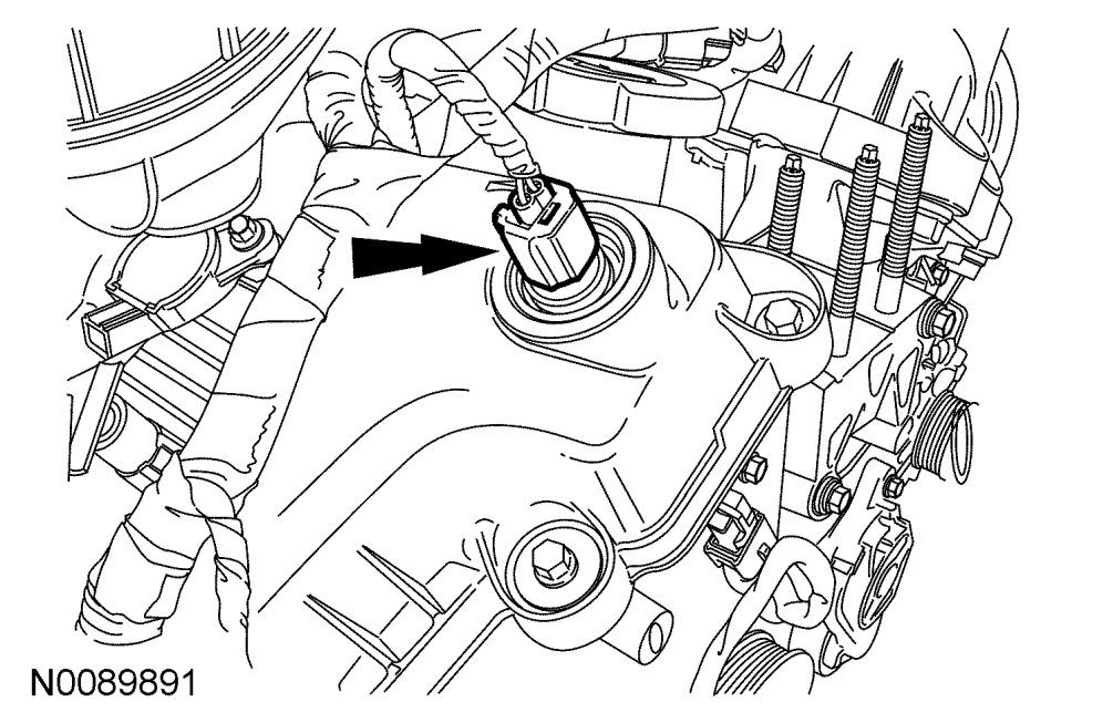1. Disconnect the RH Variable Camshaft Timing (VCT) electrical connector.