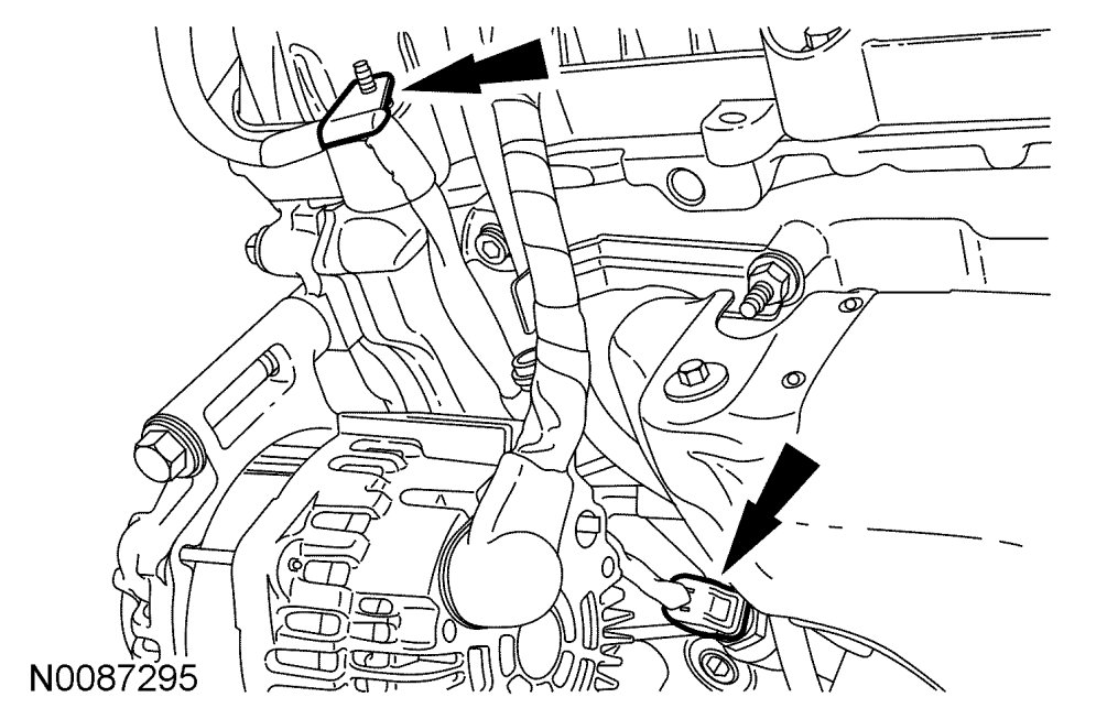 2. Disconnect the Crankshaft Position (CKP) sensor electrical connector and detach the 2 wiring harness retainers.