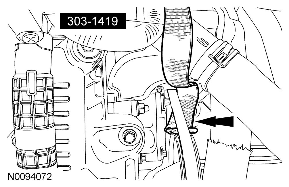 9. Detach the wiring harness retainer from the upper intake manifold.