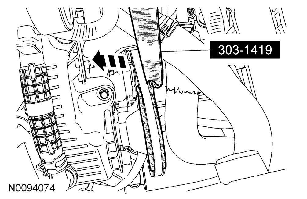 - In one quick motion, pull the Stretchy Belt Remover up and toward the RH front of the vehicle removing the coolant pump belt.