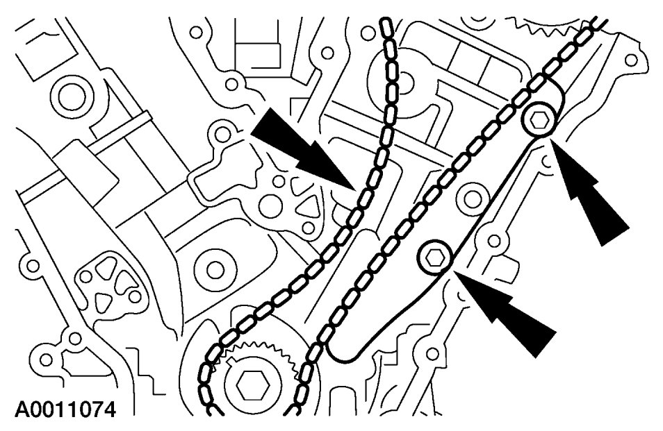 8. Install the LH timing chain and tensioner arm and the LH timing chain tensioner.
