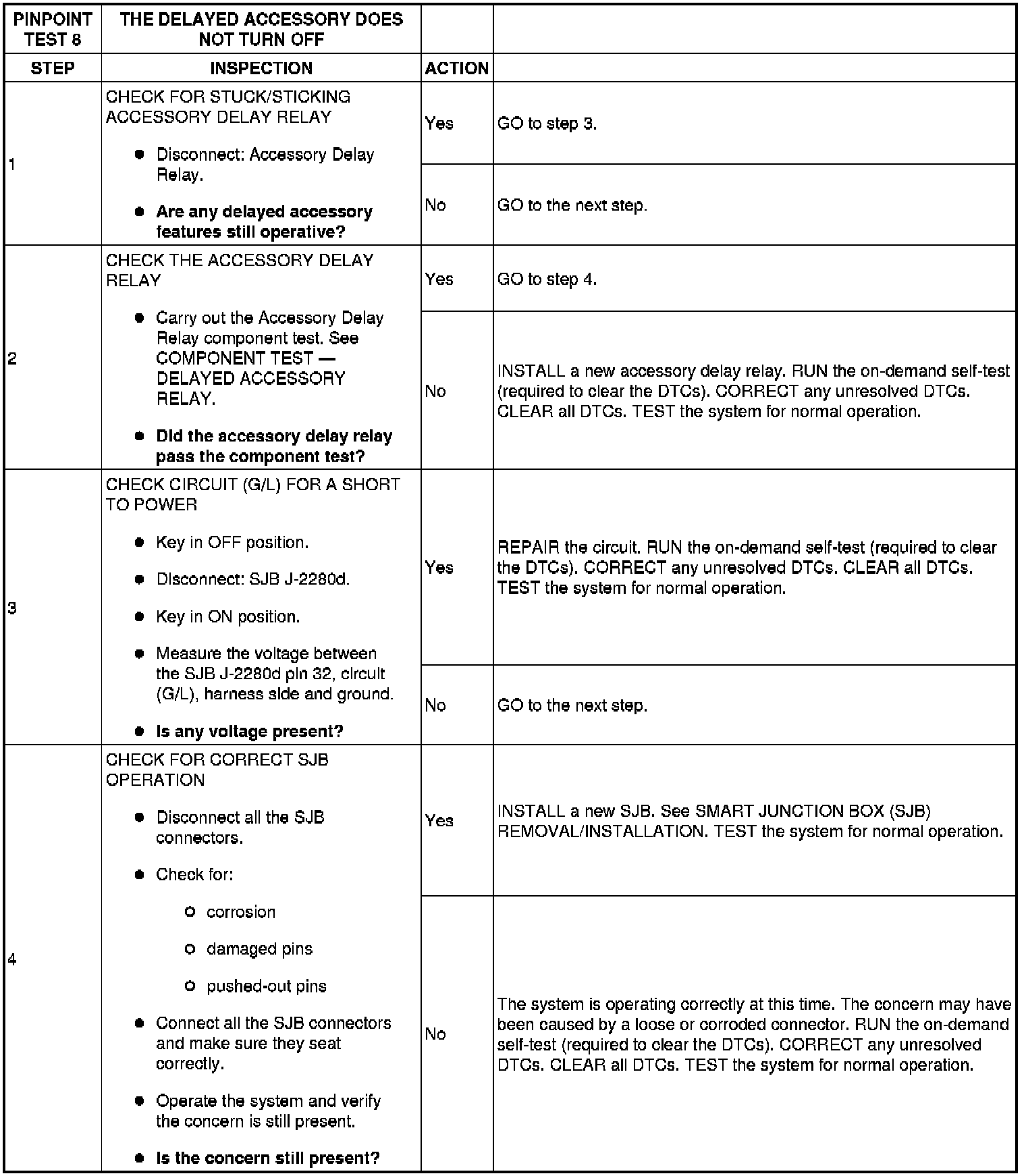 PINPOINT TEST 8: THE DELAYED ACCESSORY DOES NOT TURN OFF