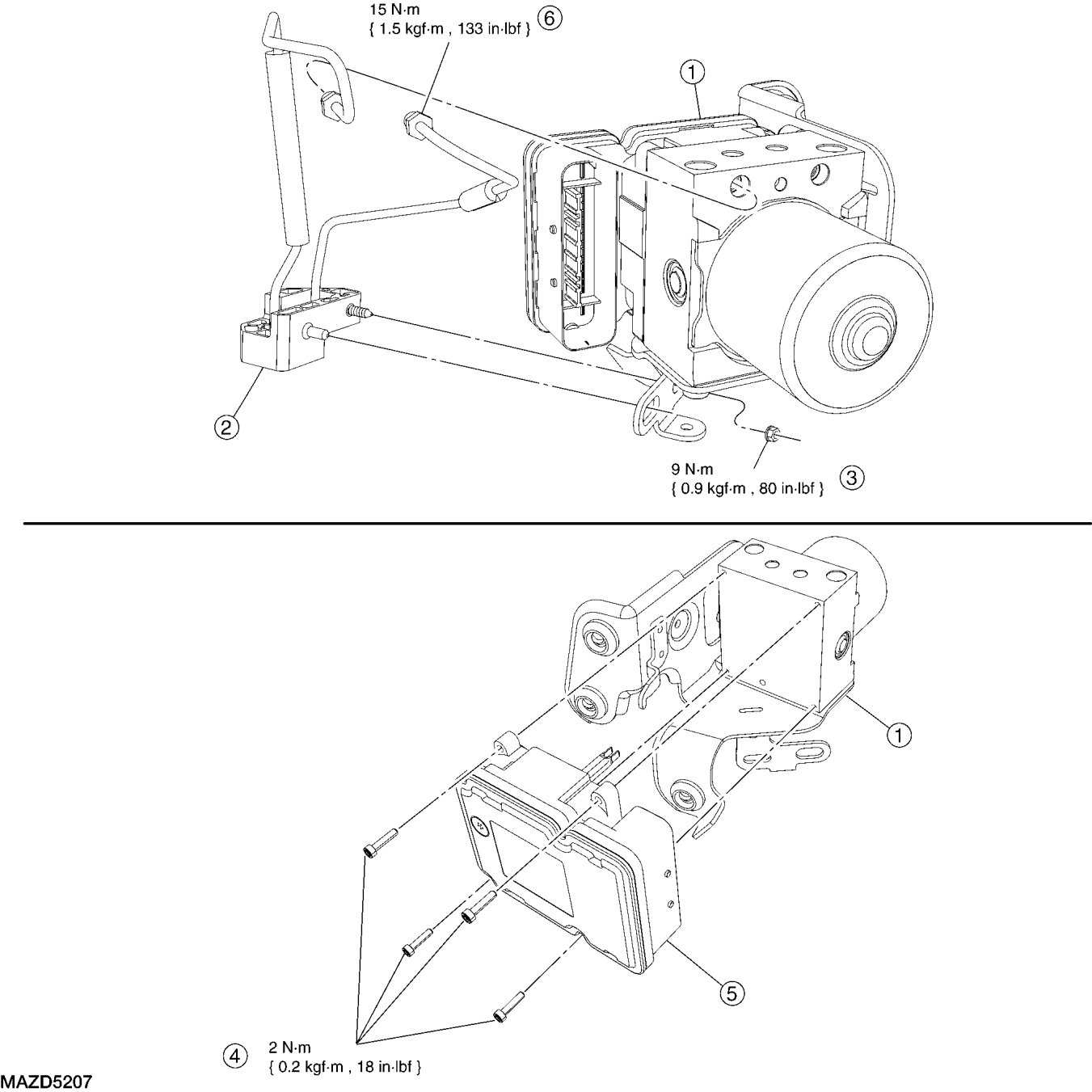 - To install, tighten to 2 Nm {0.2 kgf-m, 18 in-lbf}.