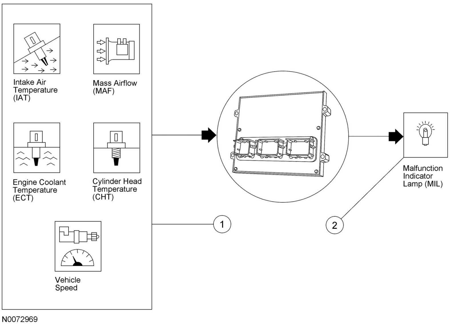 1. Inputs: ECT or CHT, IAT, engine LOAD (from MAF sensor) and vehicle speed input.