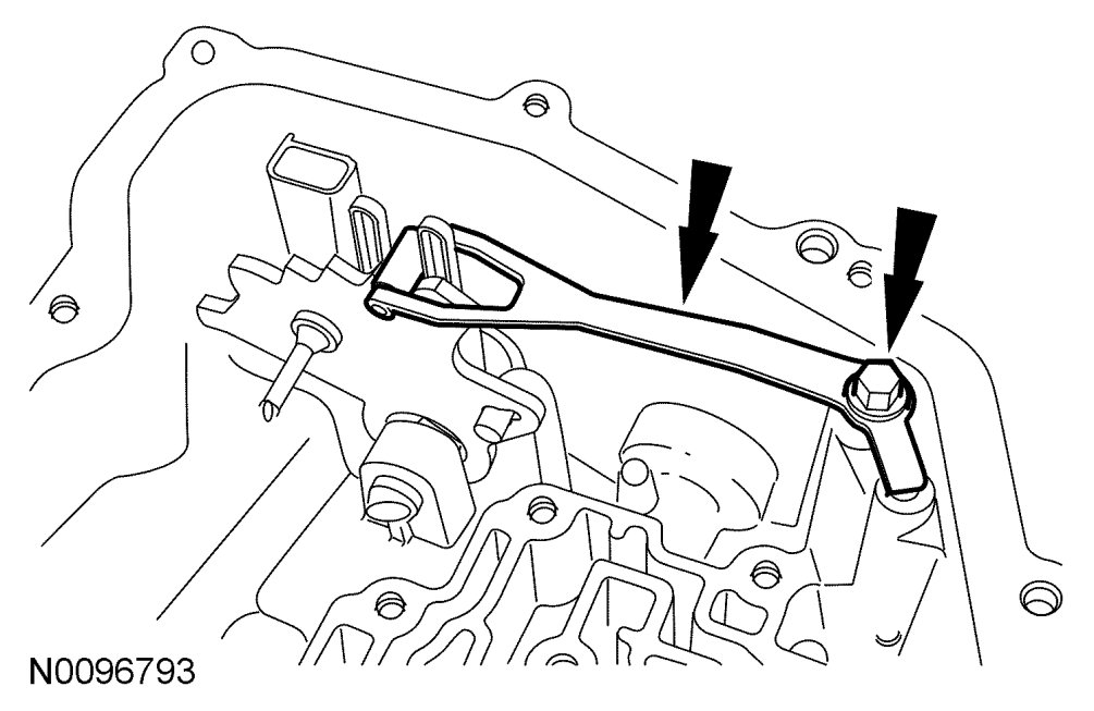 CAUTION:Make sure to hold the manual control lever while tightening the manual control lever nut or damage to the manual control lever and park components will occur.