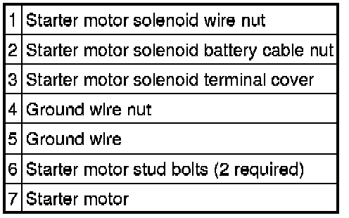 5. Remove the starter solenoid battery cable nut and disconnect the starter motor solenoid terminal cover and cables.