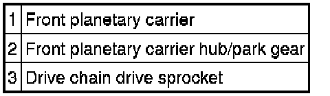The final drive consists of a drive chain and sprockets and a planetary gearset and differential assembly. The drive chain and sprockets transfer torque from the front planetary carrier hub to the differential assembly that has a planetary gearset integrated into it for final drive torque multiplication.