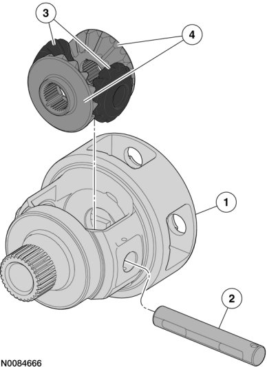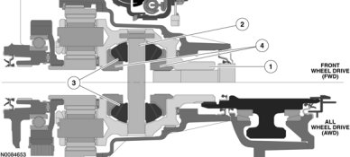 The differential allows the halfshafts and wheels to rotate at different speeds during cornering and transfers power to the power transfer unit (PTU) for all wheel drive (AWD) vehicles.The differential assembly consists of the following components: