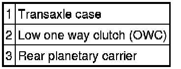 The low OWC is a brake clutch that holds the rear planetary carrier in one direction and allows it to freewheel in the opposite direction which eliminates engine braking in 1st gear when the transaxle is in DRIVE. The low OWC is also the pressure plate for the intermediate (2, 6) clutch.