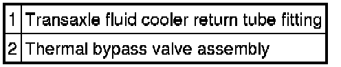 Transaxle fluid enters the lubrication circuits after flowing through the transaxle fluid cooler. The transaxle fluid cooler is mounted at the front of the vehicle. When the transaxle fluid is not up to operating temperature, an internal thermal bypass valve allows the transaxle fluid to bypass the transaxle fluid cooler. When the transaxle fluid circulates through the transaxle fluid cooler, the transaxle fluid returns to the transaxle from the transaxle fluid cooler tubes through the back transaxle fluid cooler tube