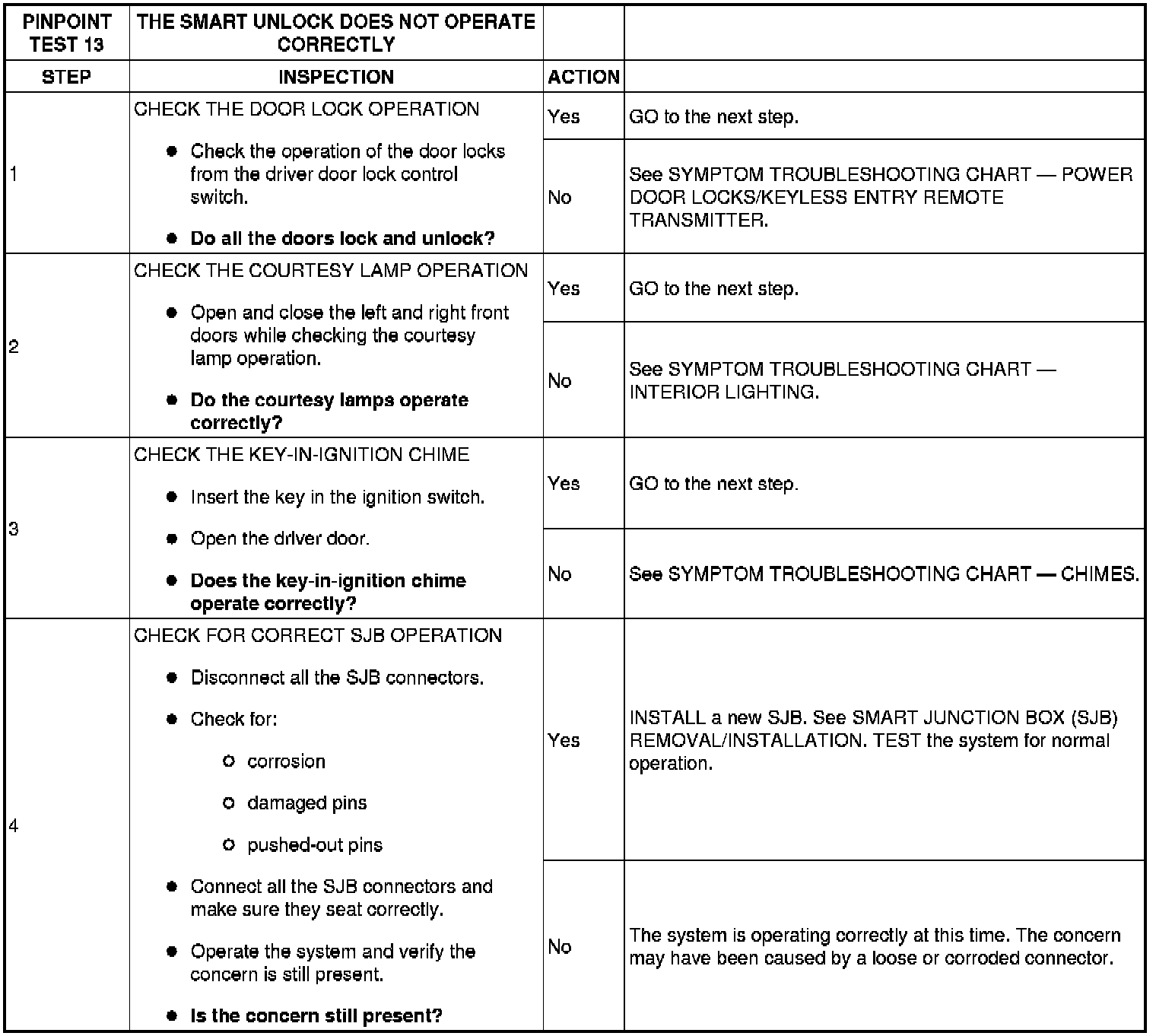 PINPOINT TEST 13: THE SMART UNLOCK DOES NOT OPERATE CORRECTLY