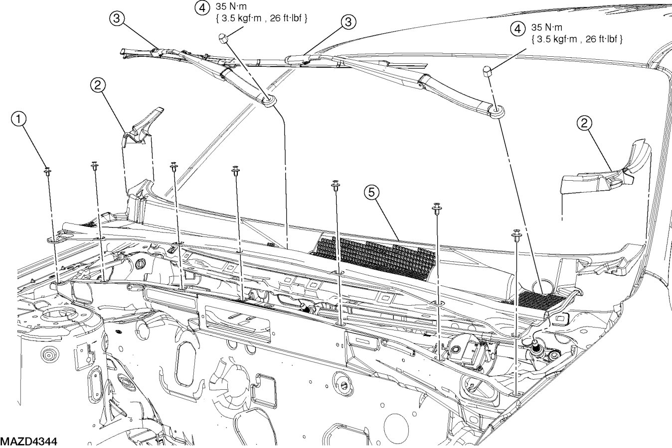 2. Remove the LH and RH wiper pivot arms.