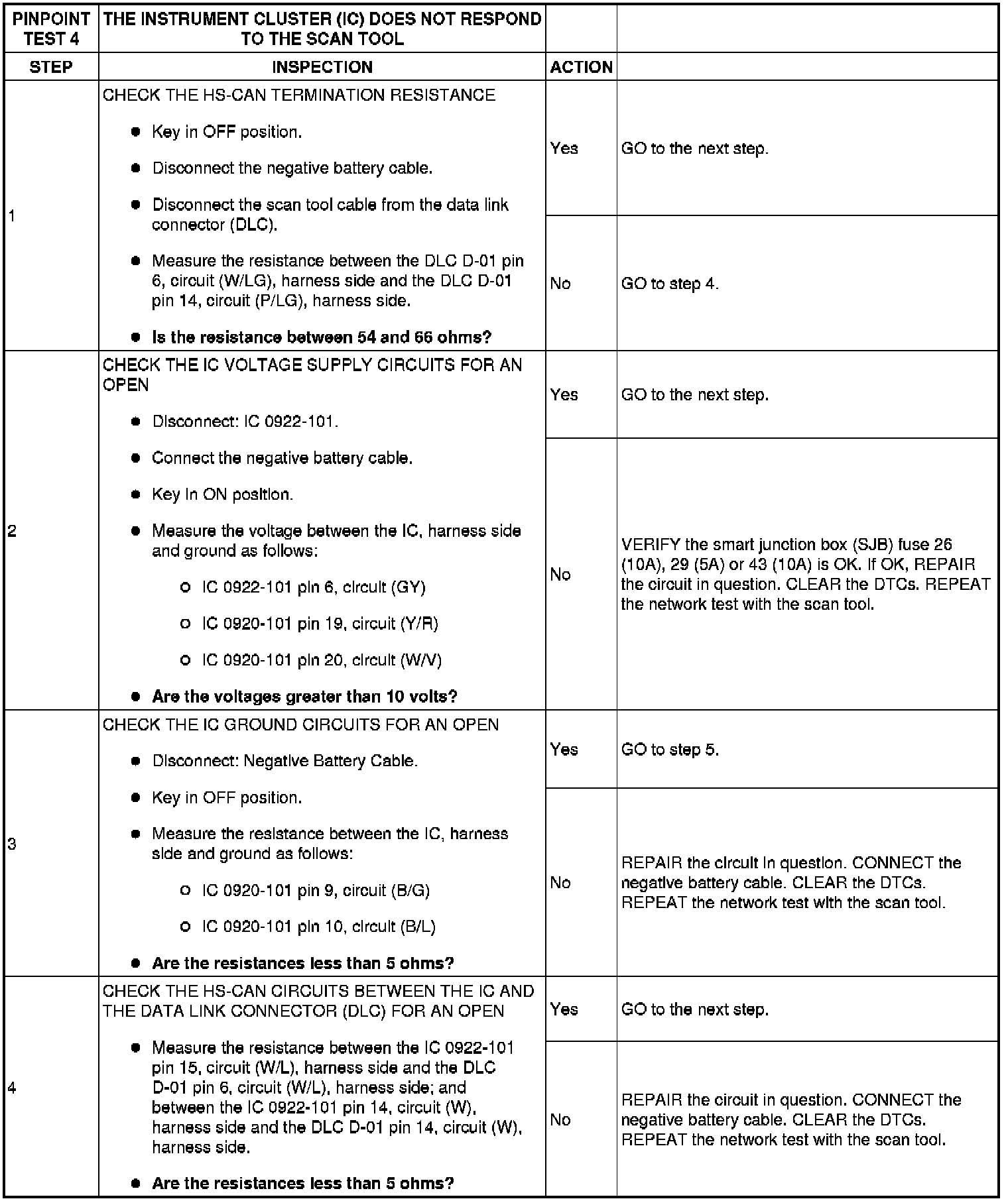 PINPOINT TEST 4: THE INSTRUMENT CLUSTER (IC) DOES NOT RESPOND TO THE SCAN TOOL