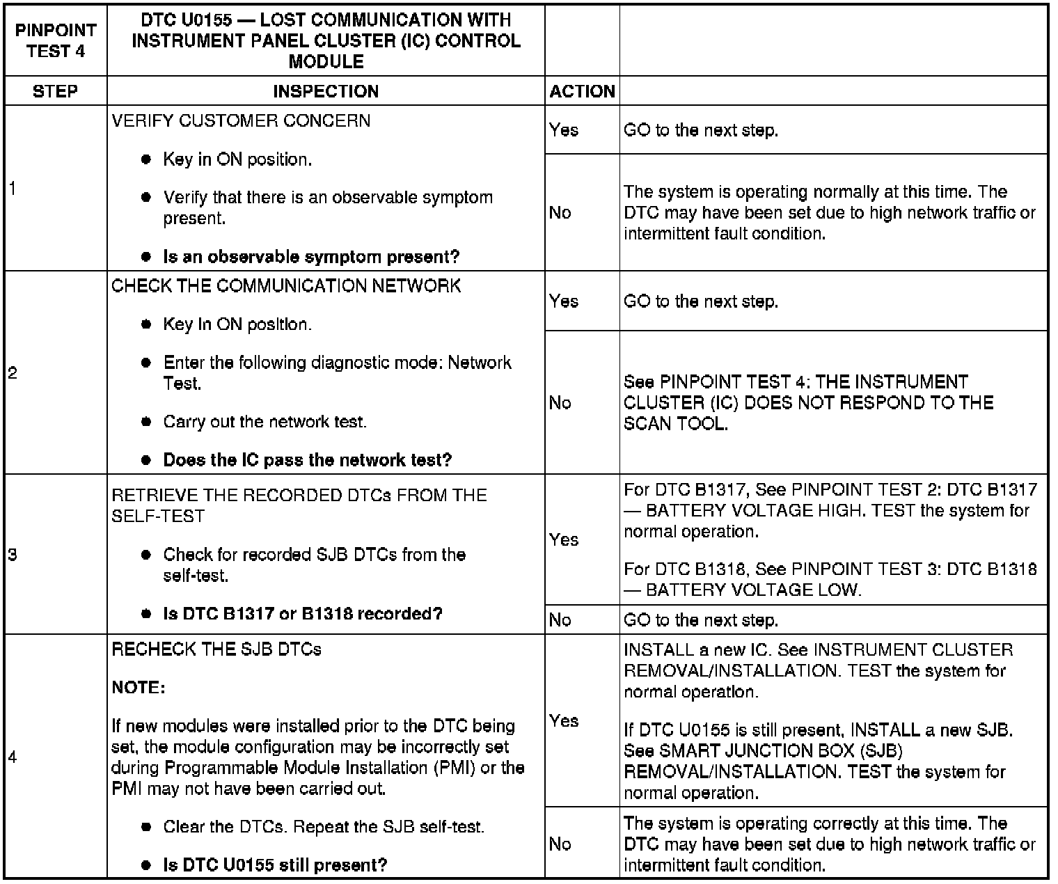 Pinpoint Test 4: DTC U0155 - Lost Communication With Instrument Panel Cluster (IC) Control Module