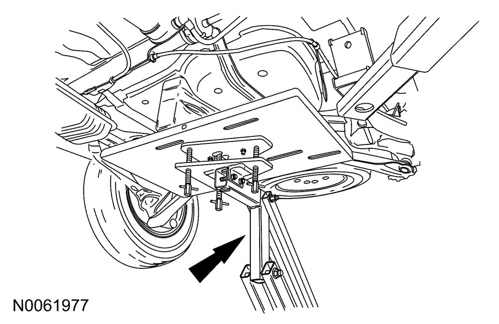 1. With the vehicle in NEUTRAL, position it on a hoist. See Lifting.