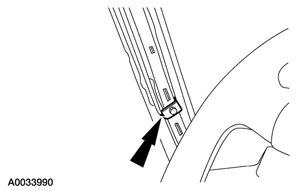 9. Position the A-pillar tether cord. Install the bolt. See the appropriate component removal and installation procedure or Specifications for the correct torque specification.