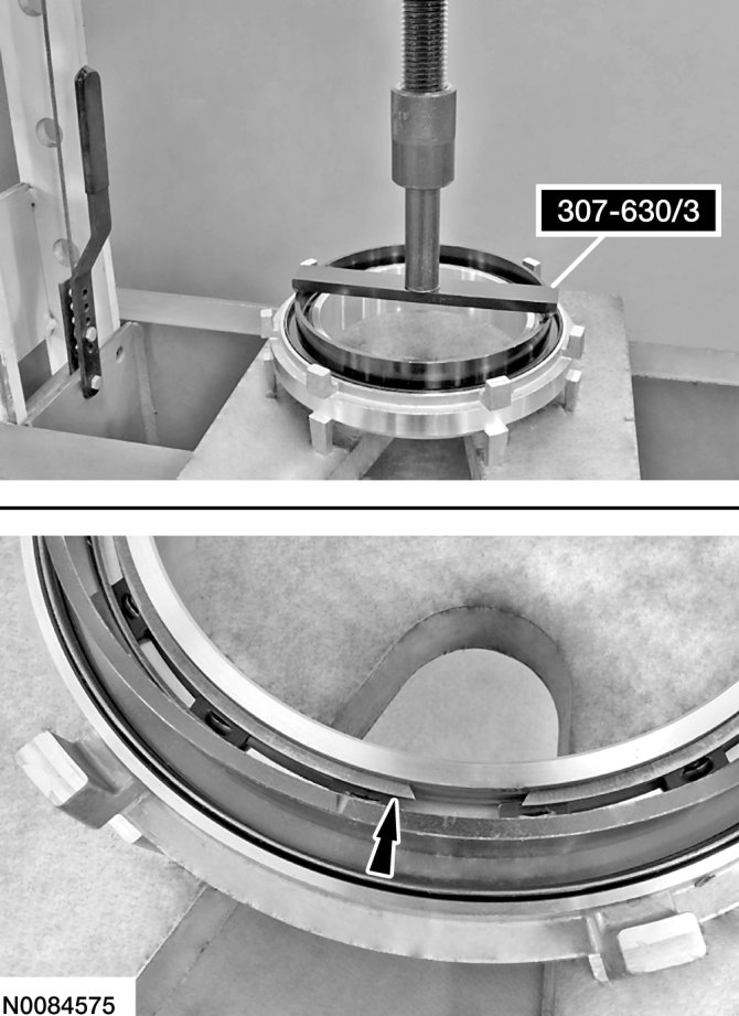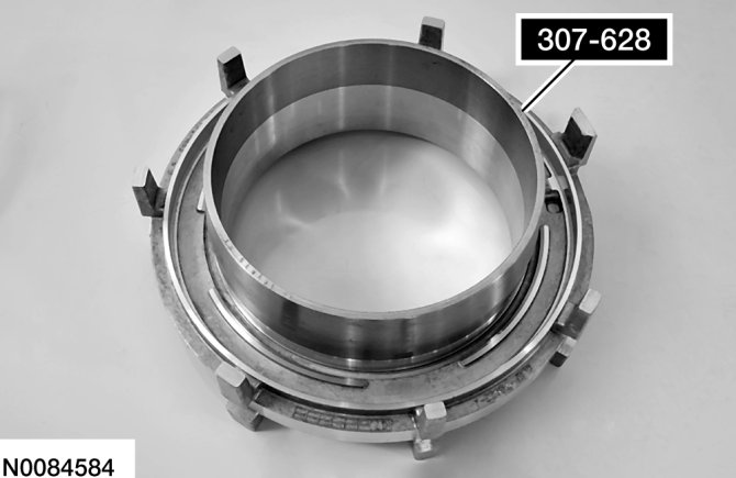 13. Position the forward (1, 2, 3, 4) clutch piston on Seal Protector 307-628/2 and Seal Protector 307-629 and push it down into the center support.