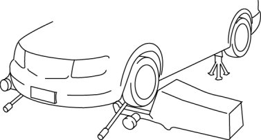 3. Support the wheels on the side not to be measured (near the wheels) using safety stands.