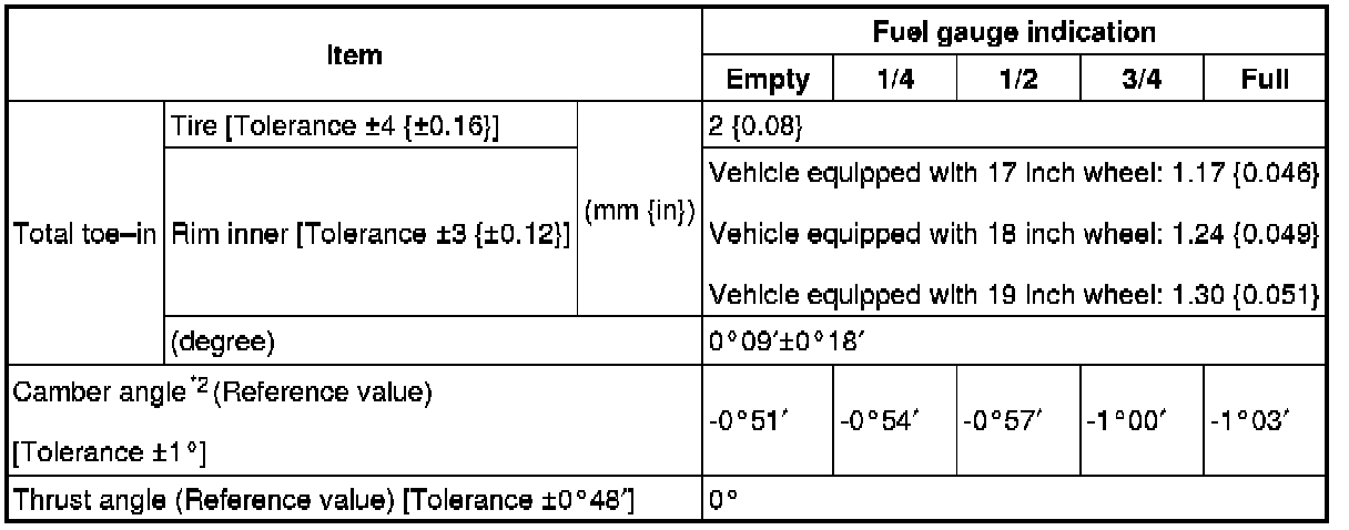 Rear wheel alignment (Unloaded)*1