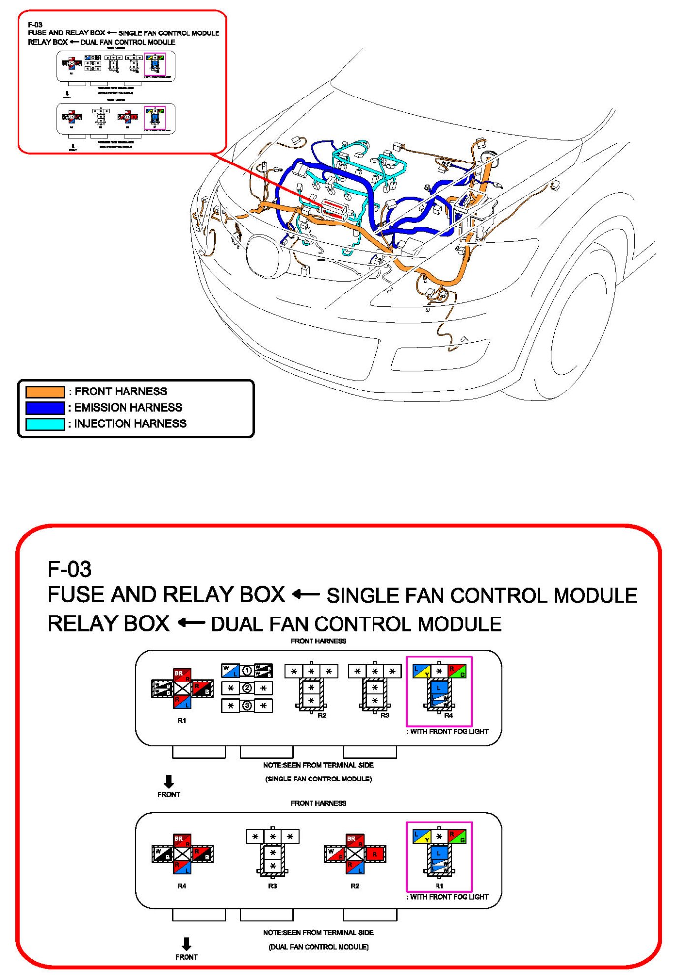 F-03 Fuse And Relay Box (Single Fan Control Module), Relay Box (Dual Fan Control Module)
