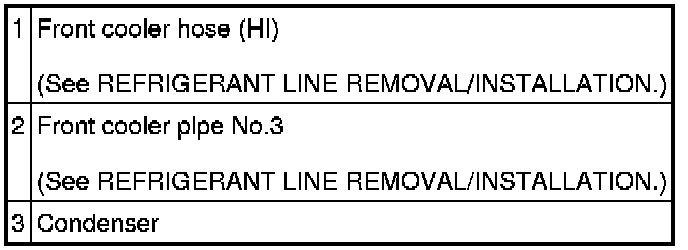 11. Remove in the order indicated in the table. Do not allow remaining compressor oil in the refrigerant line to spill.