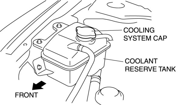 7. Refill the engine coolant into the coolant reserve tank up to the F mark on the tank.