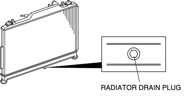 2. Remove the radiator drain plug and drain the engine coolant into a container.
