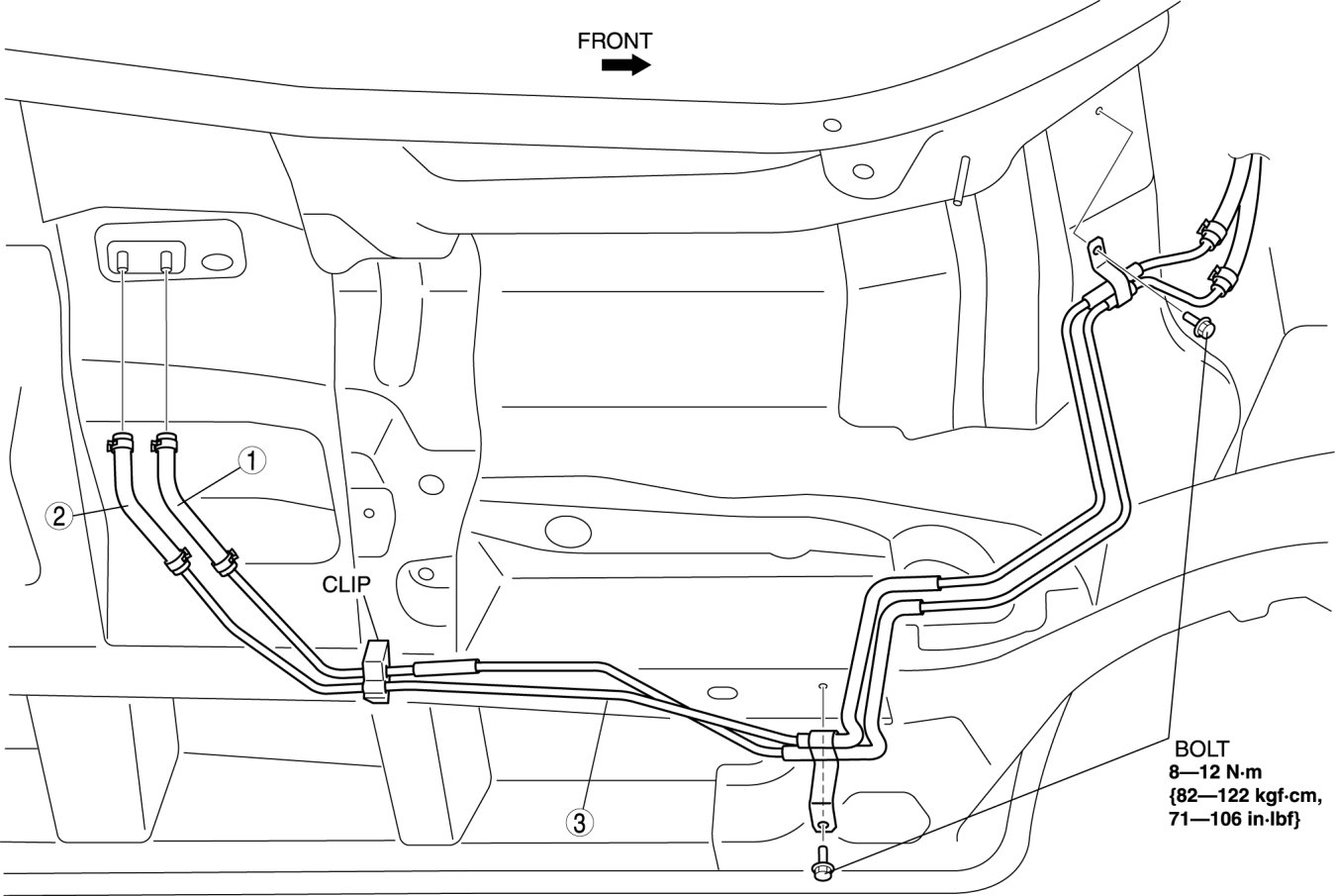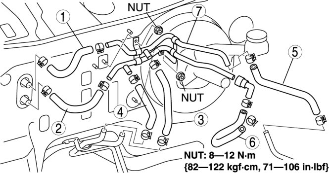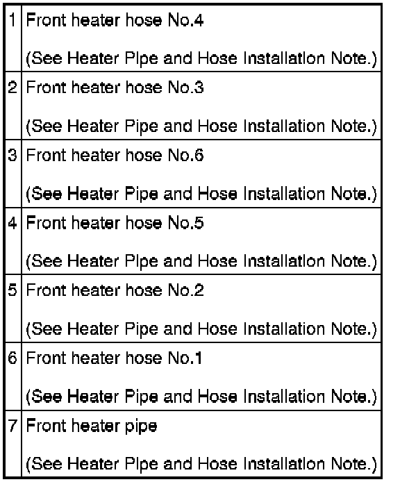 - When the rear heater pipe is removed, bleed the air from the rear heater pipe thoroughly after refilling the engine coolant to prevent air from being trapped in the rear heater pipe.