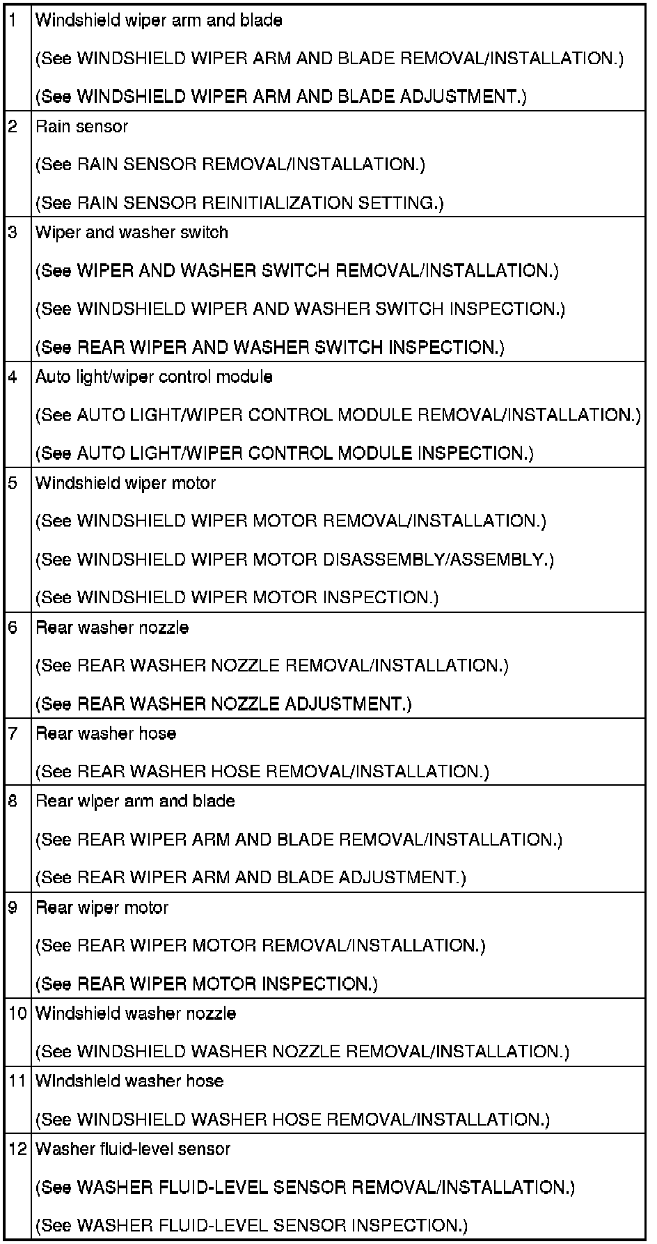 WIPER/WASHER SYSTEM LOCATION INDEX