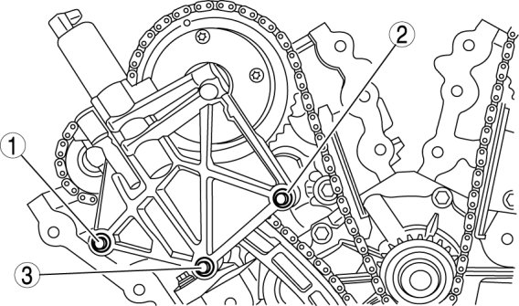 1. Loosen the OCV component bolts in the order shown in the figure.