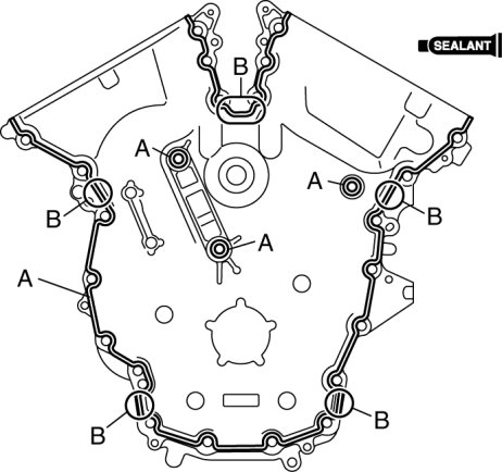 1. Apply the silicon sealant (Loctite 5900) to the engine front cover shown in the figure.