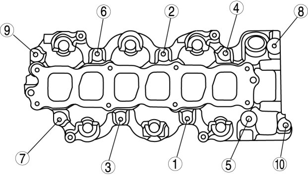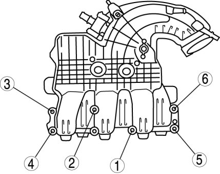 Intake ManifoldTighten the intake manifold installation bolts in the order shown.