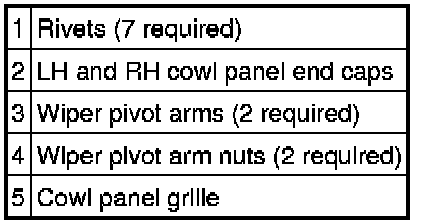 5. Release the cowl panel grille from the retaining clips and remove the cowl panel grille.