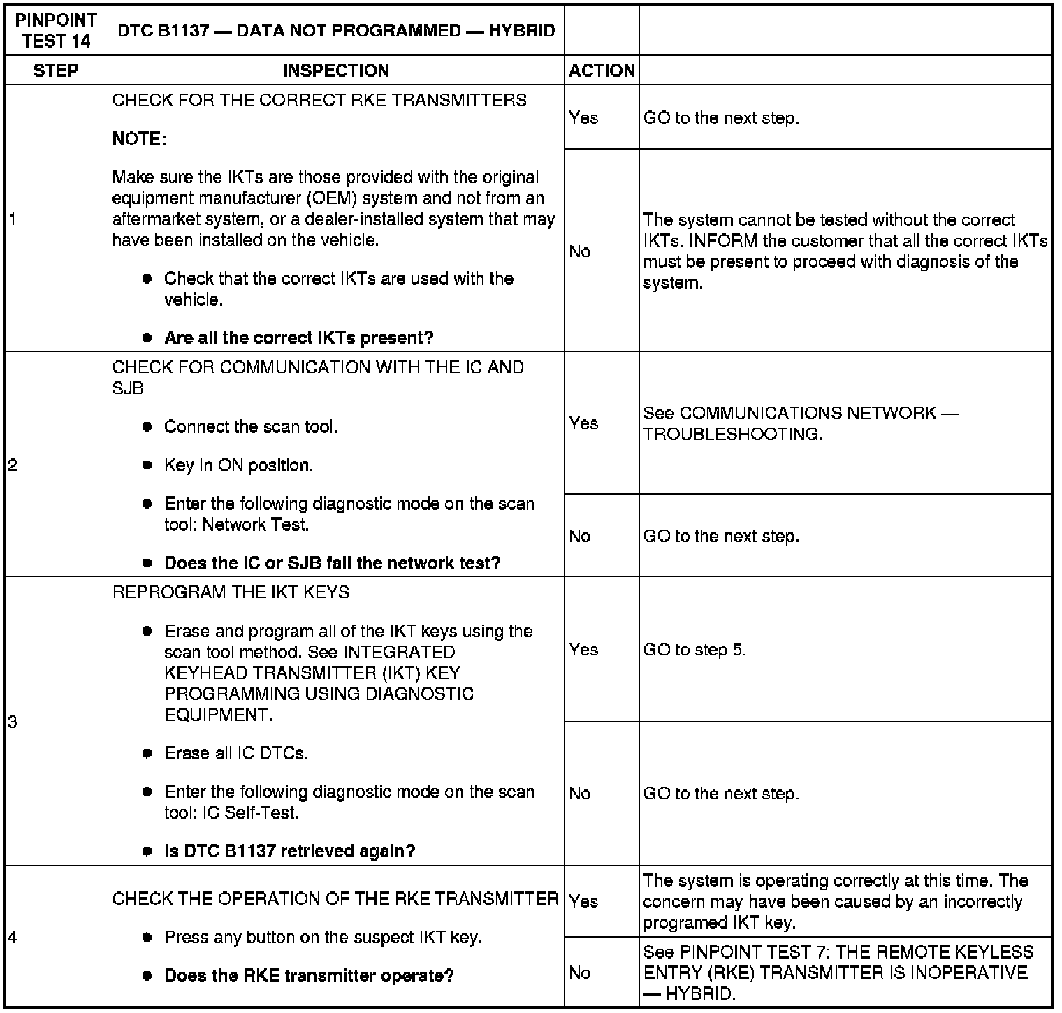 PINPOINT TEST 14: DTC B1137 - DATA NOT PROGRAMMED - HYBRID