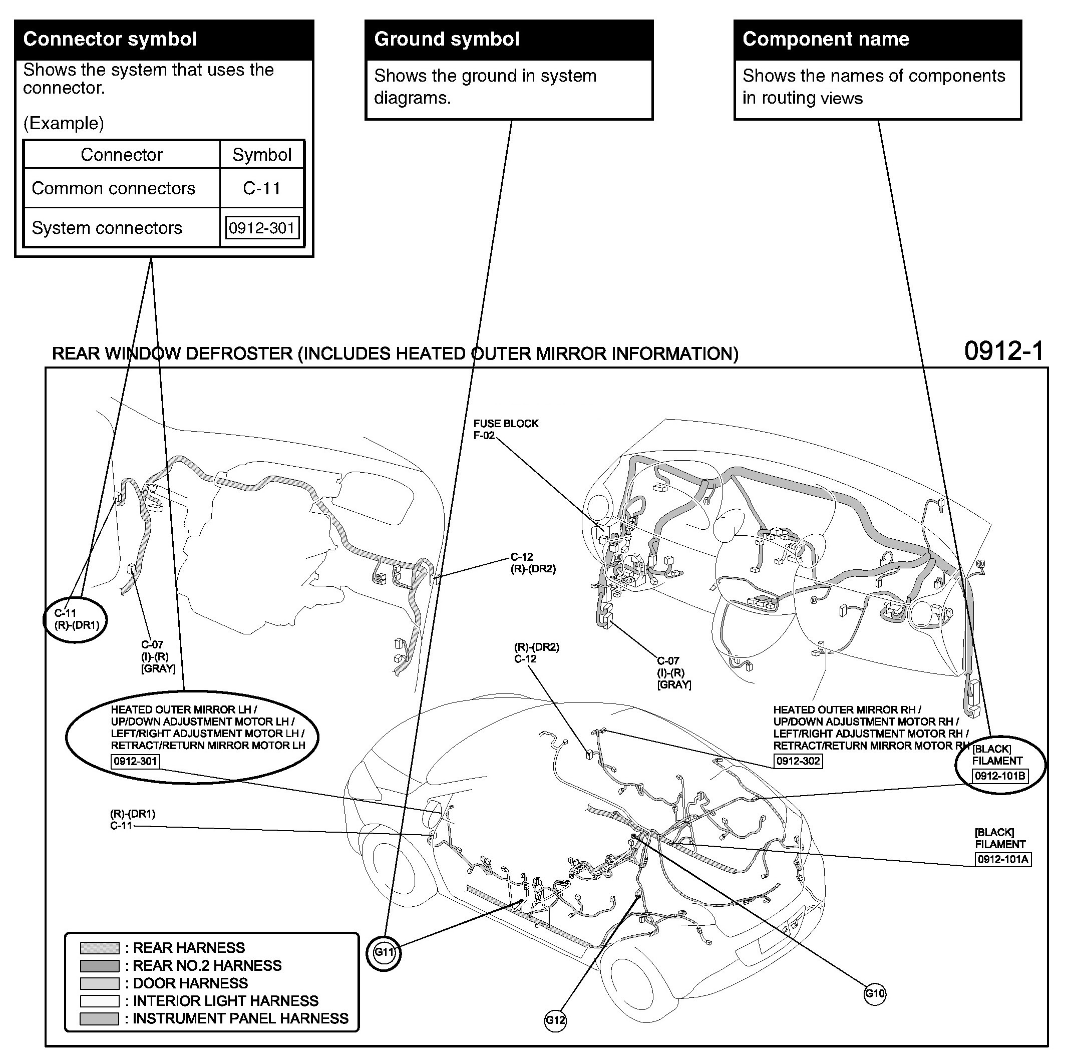 The routing view shows where electrical components are on the system circuit diagram by call out line and connector symbols.