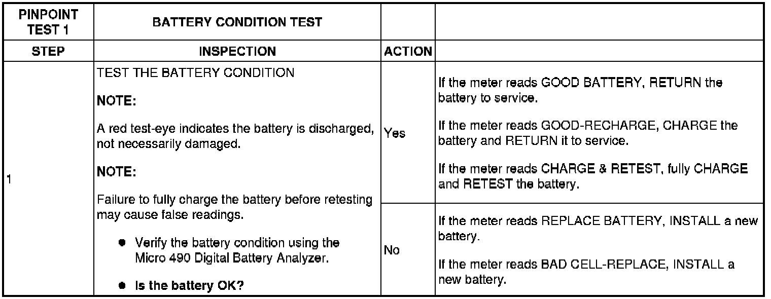 PINPOINT TEST 1: BATTERY CONDITION TEST