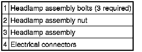3. Remove the headlamp assembly nut and the headlamp assembly.