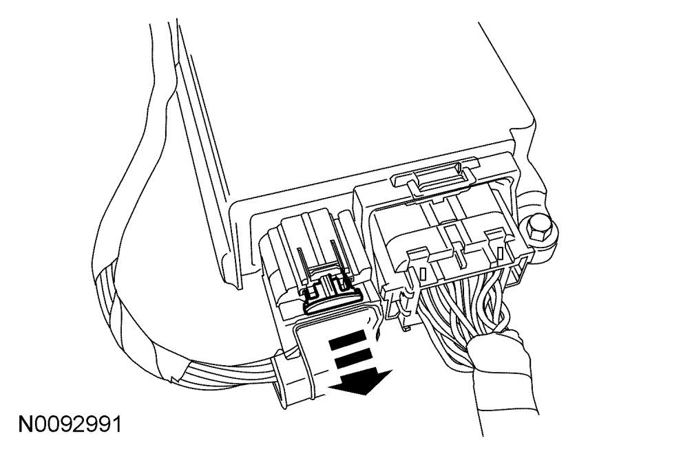 5. Disengage the lock tab, press and disconnect the small RCM electrical connector.