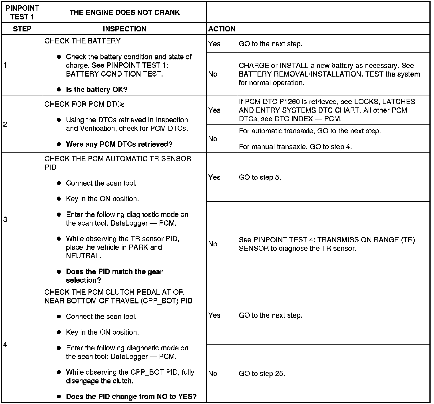 Pinpoint Test 1: The Engine Does Not Crank